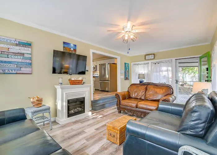 Steps To Ocean Surfside Beach Home With Patio comprises an equipped kitchenette with a fridge, an oven, and kitchenware. Offering American dishes, bar Conch Cafe is located a stone's throw from this accommodation.